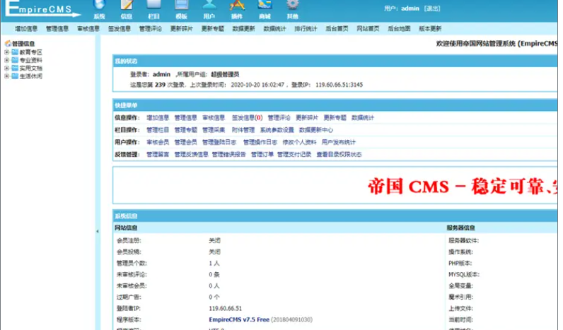 采用帝国cms7.5内核新系统,整站带数据带采集