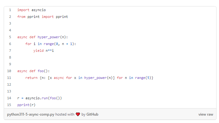 但是,在 Python 3.11 中,如果它们包含async 允许内部推导的内部语句,推导就成为隐式异步的async。