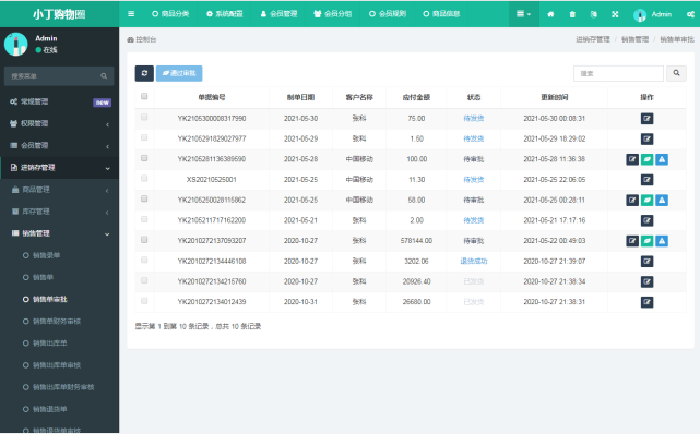 支持销售、出库、销售审核、出库审核、返回等跟踪;