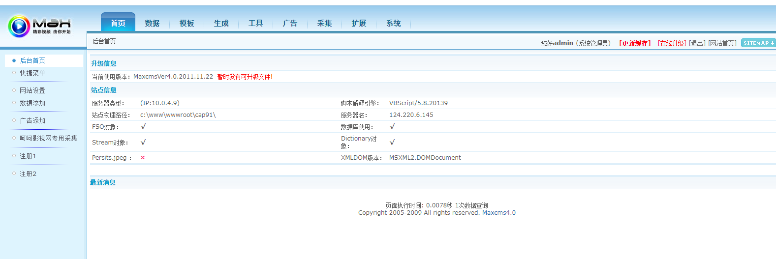 本源码对空间要求:空间大小建议在500M以上,空间必须支持mysql数据库,电脑手机已经整合到一起了,上传到空间就可以使用,数据同步,后台带采集,省去新手的麻烦!