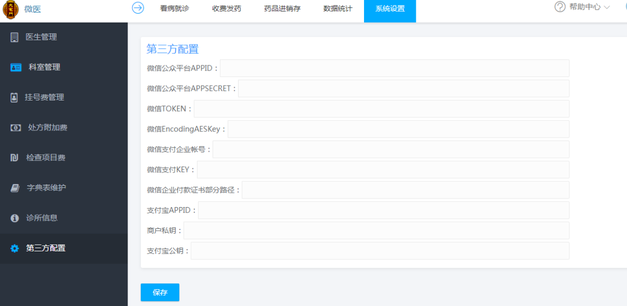 系统设置:科室管理 挂号费管理 处方附加费 检查项目费 字典表维护 诊所信息;