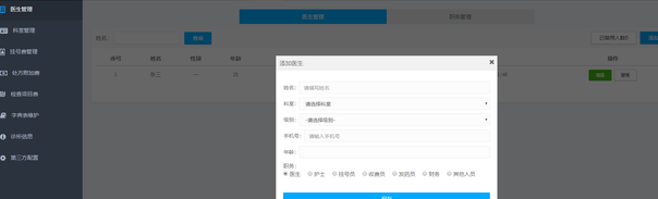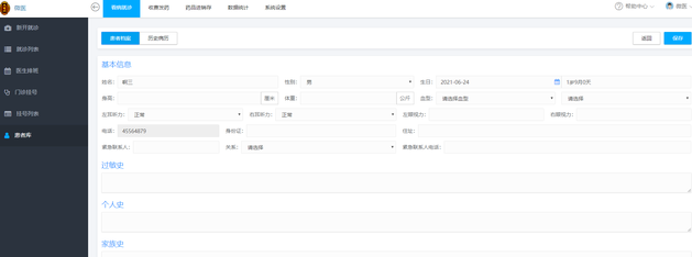 看病就诊:新开就诊 就诊列表 医生排班 门诊挂号 挂号列表 患者库;