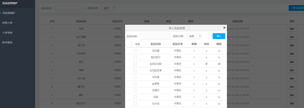 药品进销存:药品信息维护 供应商维护 采购入库 入库市核 库存查询: