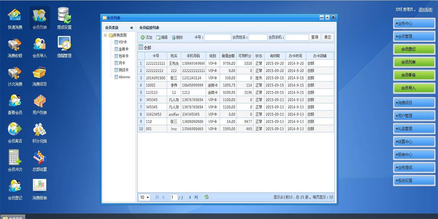 该套会员管理系统是一套通用性强、功能强大的会员管理软件,是企业经营管理不可或缺的管理工具。系统将会员信息、会员消费紧密结合,实现会员储值卡、折扣卡、计次卡多卡合一的组合卡管理功能,且会员消费可自动积分,帮助企业全面实现管理信息化。