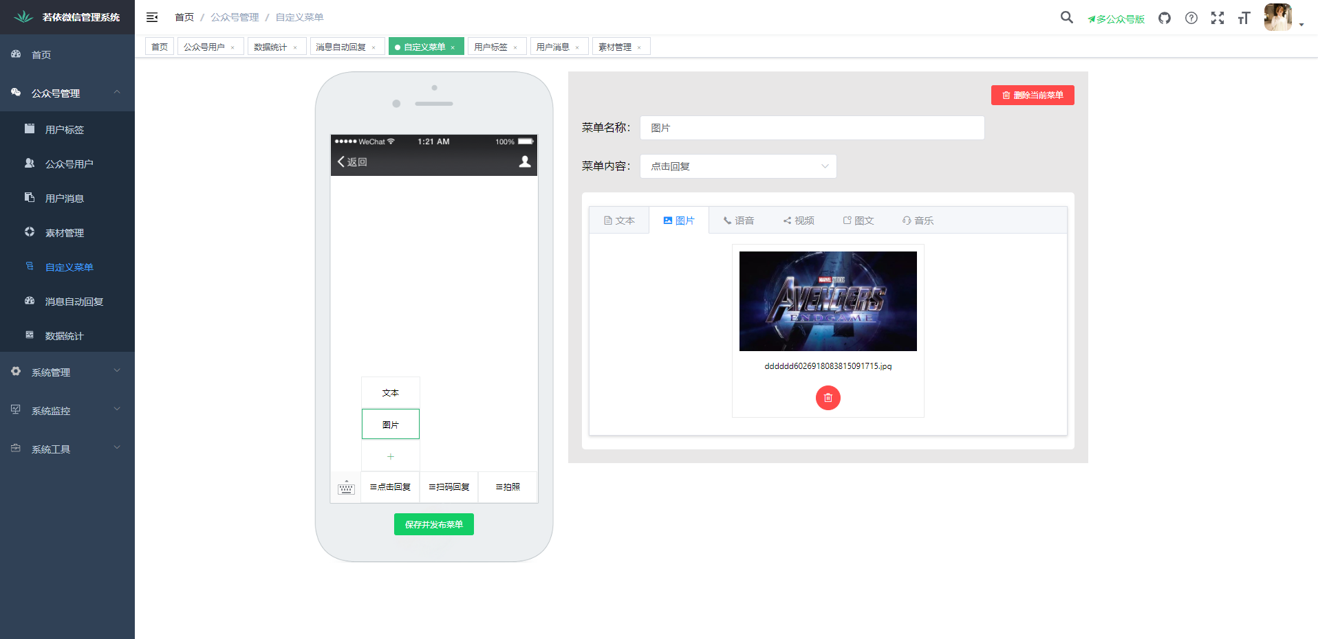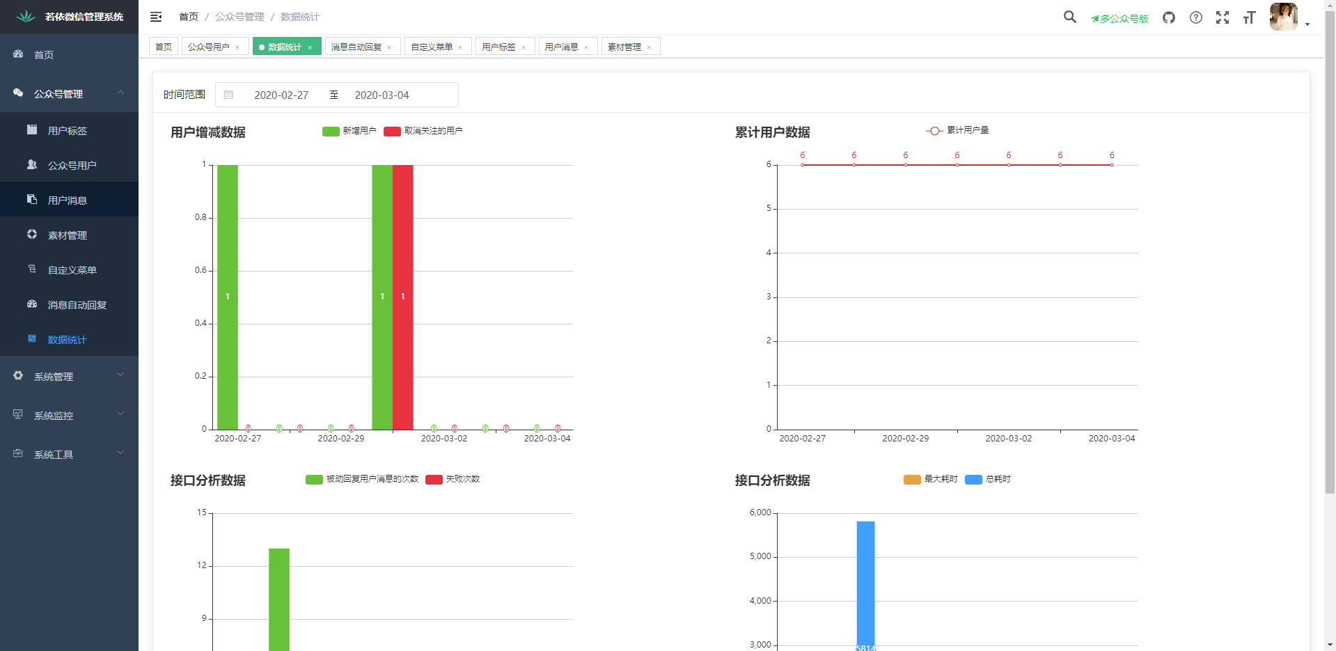 - 基于RuoYi-Vue二开,集成了MybatisPlus、Avue、WxJava SDK