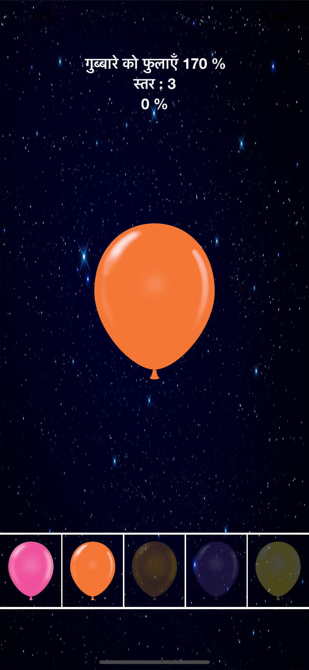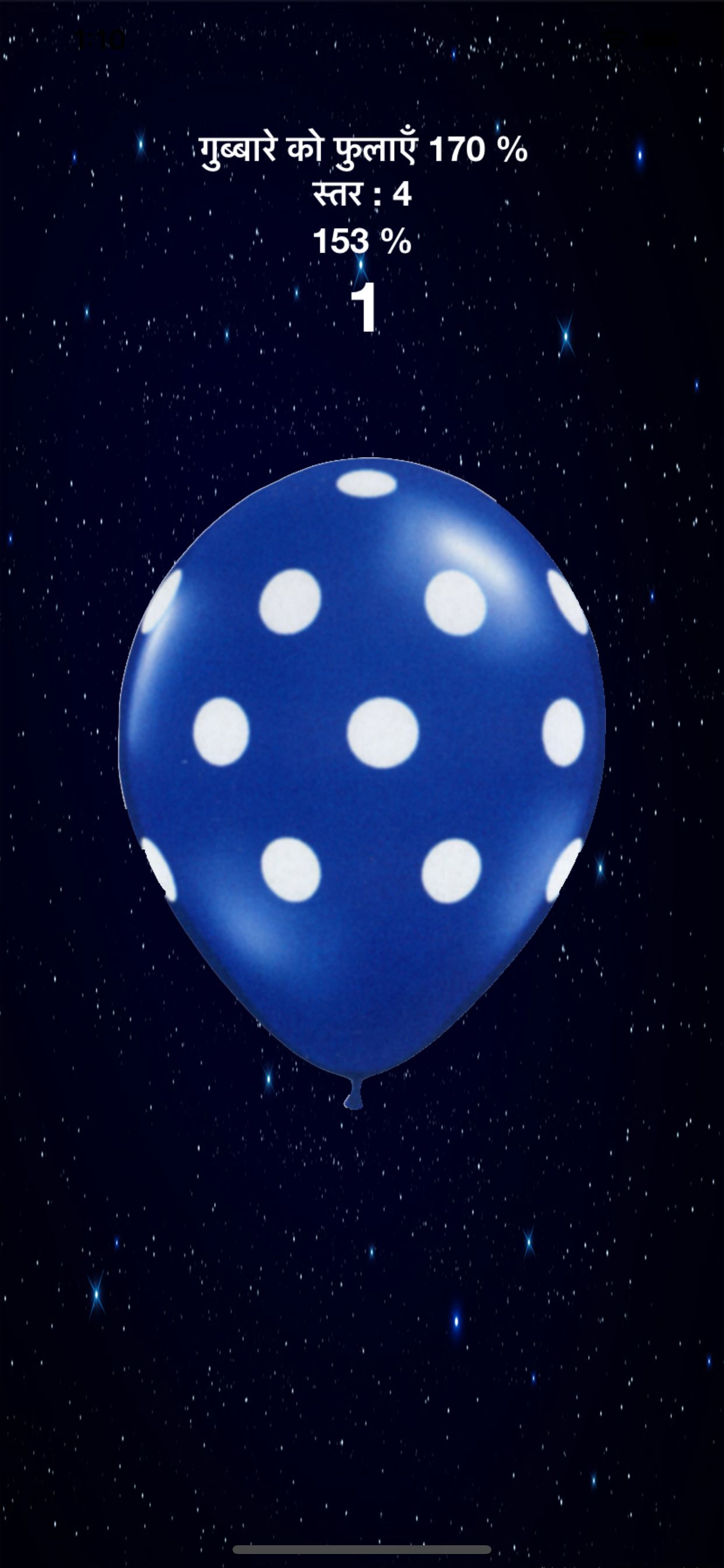 当气球百分比数字与给定数字匹配时,您会将气球充气到给定的百分比数字坐在设备屏幕上运行您的两个手指然后离开屏幕在该匹配点以赢得其他明智的气球如果您增加气球将爆裂 百分比数字比给定的百分比数字,所以你会失败。
