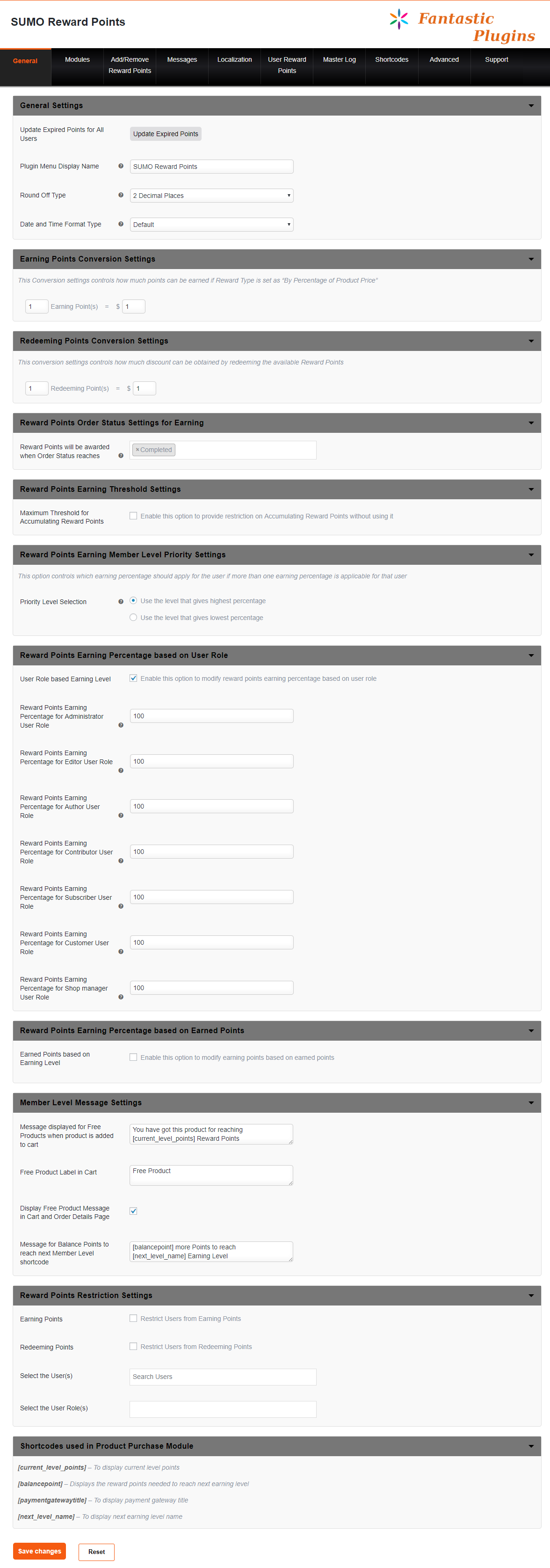 SUMO 奖励积分 – WooCommerce 奖励系统是一个完整的 WooCommerce 忠诚度奖励积分系统和最全面的 WooCommerce 积分和奖励插件。 使用奖励积分奖励您的客户购买产品、撰写评论、注册、推荐、社交推广(Facebook 赞、Facebook 分享、Twitter 推文、Google+ 分享和 VK.com)在您的网站等。赚取的奖励积分可以兑换 未来的购买。 SUMO 奖励积分提供了在产品级别、类别级别和全球级别提供奖励积分的灵活性。 SUMO Reward Points 支持简单、简单订阅、可变和可变订阅产品。 它支持购买产品的固定奖励积分或按产品价格的百分比奖励。 应在 WooCommerce 中启用优惠券以使 SUMO 奖励积分插件正常工作。