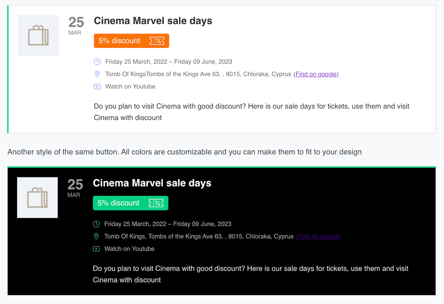 每个插件块都有设计选项,您可以更改任何元素的颜色。