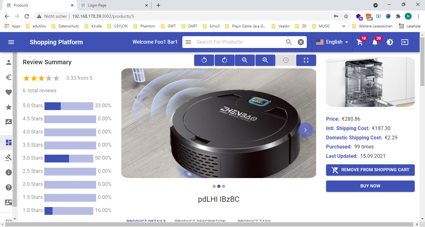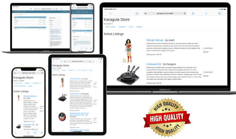 它是一个集中的、多语言、多主题的电子商务平台。 只有平台所有者(或平台管理员)才能创建产品和拍卖,普通用户只能购买产品和参与拍卖。