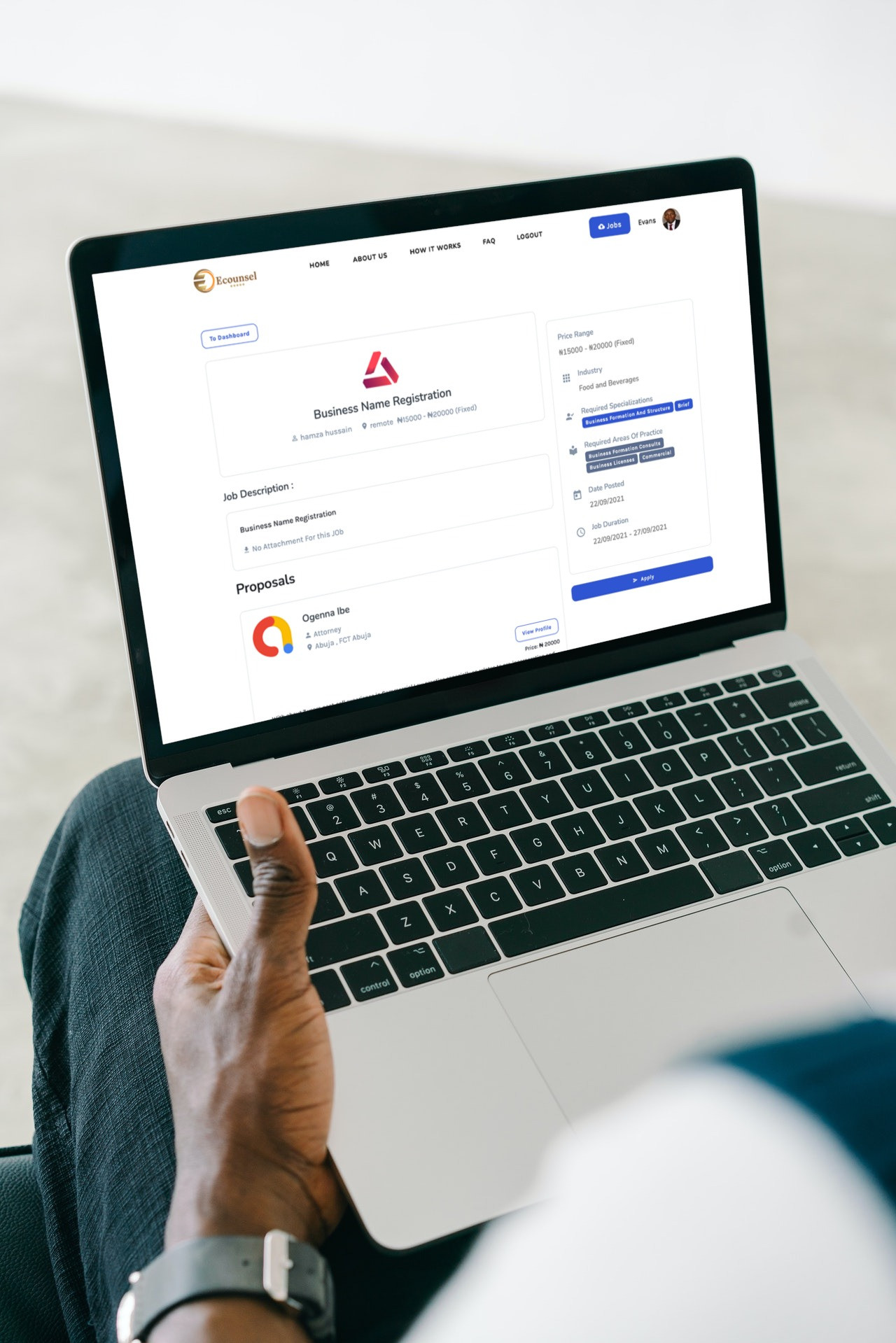 Ecounsel 是一个专业的法律自由职业者市场平台,具有高级功能,可将您的法律业务提升到更高水平。 ECOUNSEL 是一个在线平台,旨在彻底改变访问法律服务的方式。 工作世界正在发展并在这一新现实中蓬勃发展,我们专注于使用数据和技术作为工具,让所有非洲人更容易获得法律帮助。