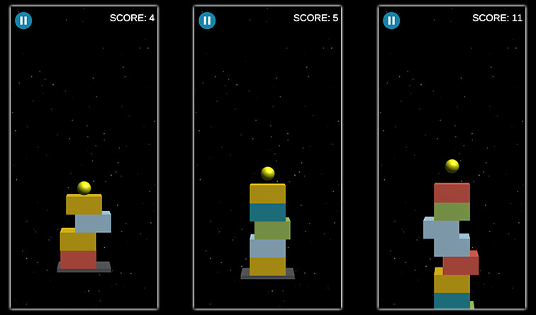 触摸屏幕跳跃。 将积木堆叠在一起,避免撞到它们。 将块完美地排列在一起,您将获得奖励分数。 一旦一个方块击中你,游戏就结束了。 尽可能多地得分。