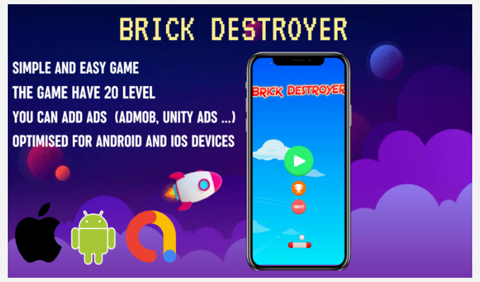 Brick Destroyer 是一款破坏者风格的游戏,你必须摧毁上面的所有砖块