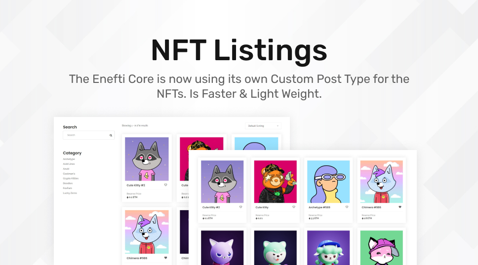 Enefti – NFT 市场核心,如果终于来了。 等待现在结束了。 在 WordPress 中创建一个完整的 NFT 市场从未如此简单。 我们投入了 30.000 美元的项目,并以 299 美元的价格添加了此插件中包含的所有功能。