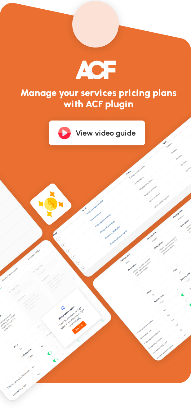 此插件已与“高级自定义字段”插件兼容,该插件将用于创建具有动态字段的任务包(价格计划)。 以下字段类型使用我们的主题进行了测试