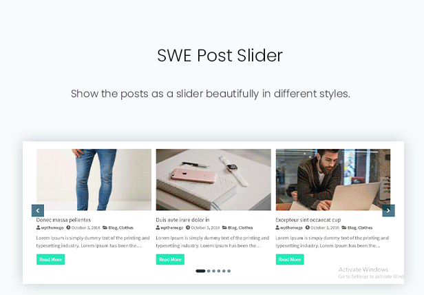 ✔️ SWE 帖子滑块小部件:它将有助于以不同样式将帖子显示为精美的滑块。