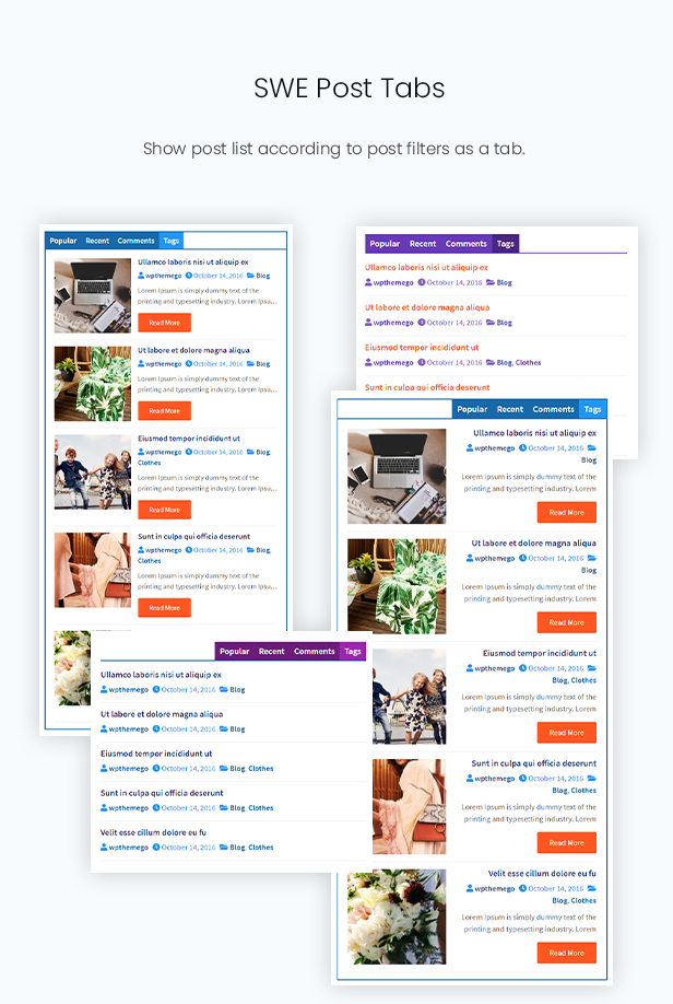 ✔️ SWE 帖子列表:它将有助于以不同样式将帖子精美地显示为列表。