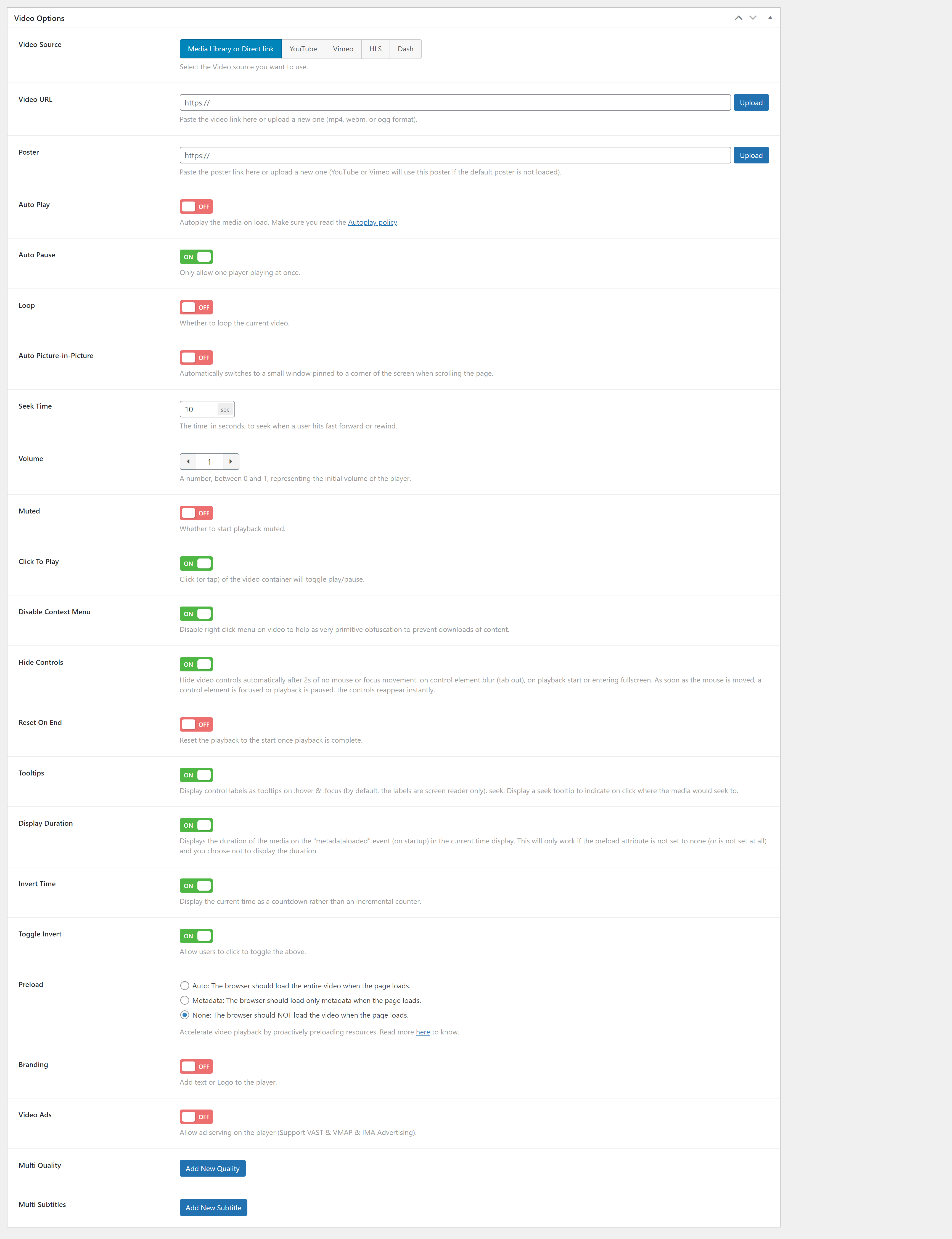 VidPlayer 是一个简单易用的 YouTube 视频播放器定制器 WordPress 插件,支持来自 YouTube、Vimeo、MP4、HLS (m3u8)、MPEG-DASH (MPD) 或自托管的视频。 完全响应式设计适用于任何具有无限颜色选项的设备和现代浏览器。