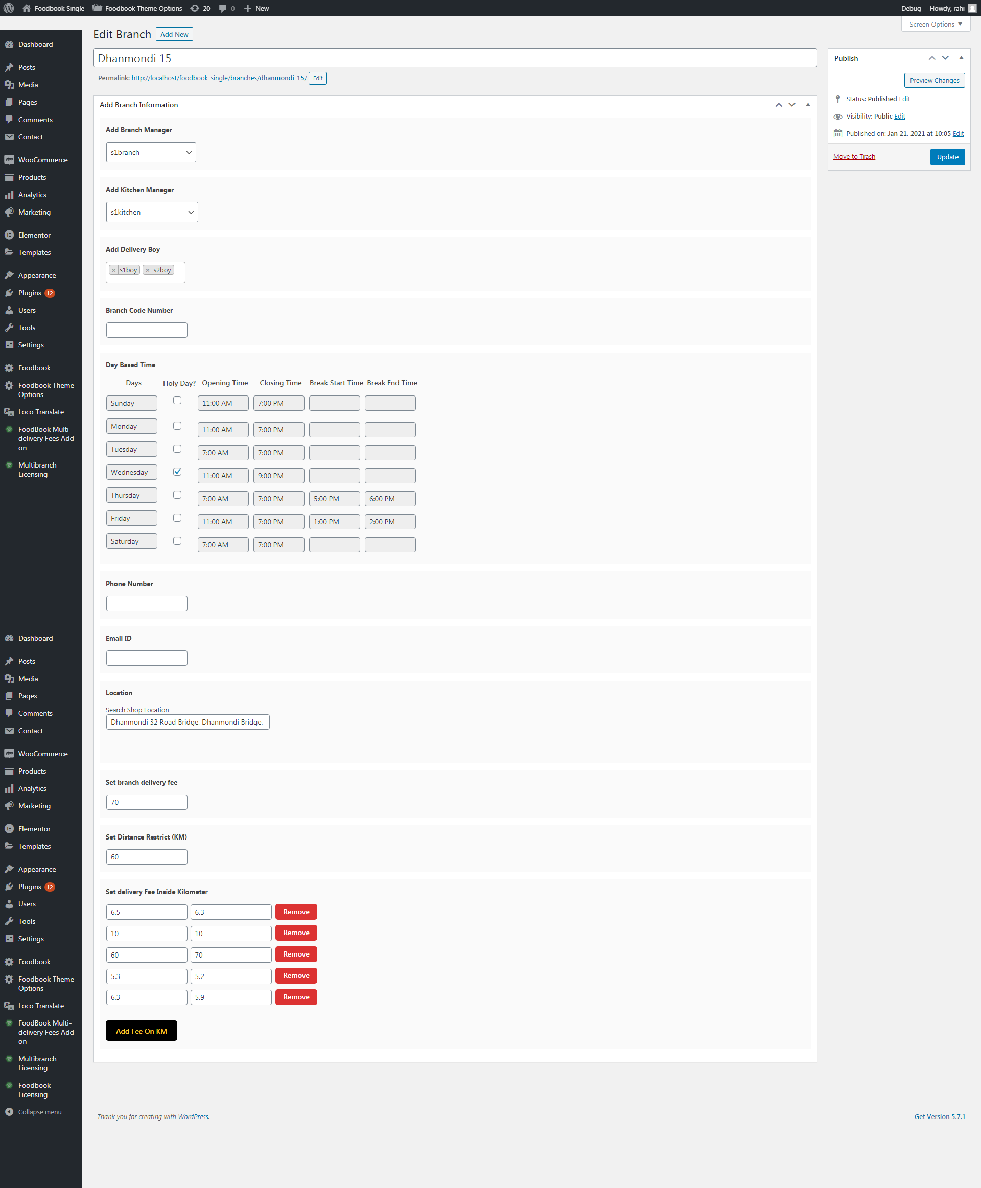 如果您有 Multibranch,则将 FoodBook Multibranch Add-on 与 FoodBook 一起使用。