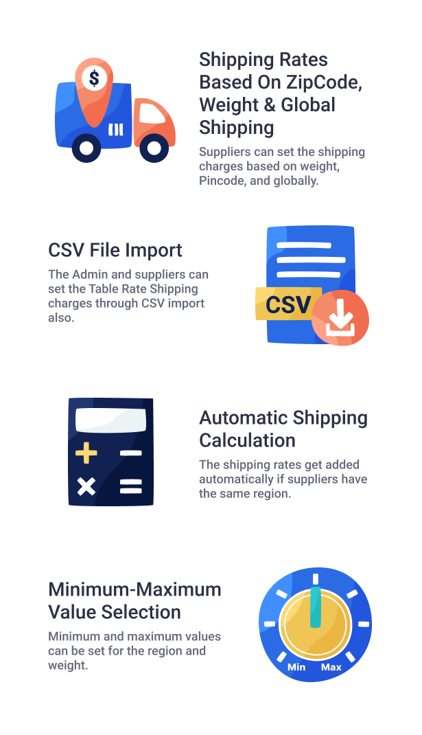 在此插件的帮助下,供应商可以根据重量、Pincode 和全球创建表格运费。