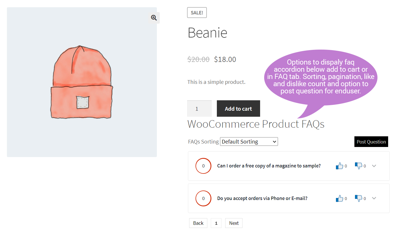 可以选择喜欢或不喜欢访问者的任何答案。 此外,您可以为您网站上的每个产品添加无限数量的问题和答案。 产品常见问题解答很有帮助,并且在计算机、手机和平板电脑上看起来很棒。
