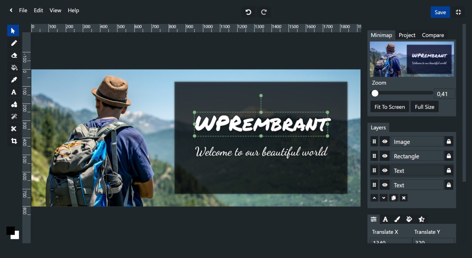 WPRembrant – 用于 WordPress 的媒体图像编辑器不仅仅是一个简单的图像编辑器插件。 借助基于 HTML5 画布的直观用户界面,您不仅可以操作现有的媒体图像,还可以创建任何您想要的东西,从徽标到横幅,或引人注目的特色图像并将其导出到媒体库。