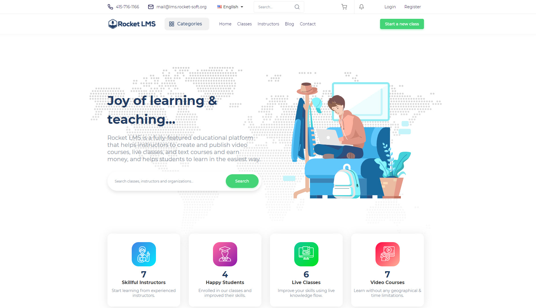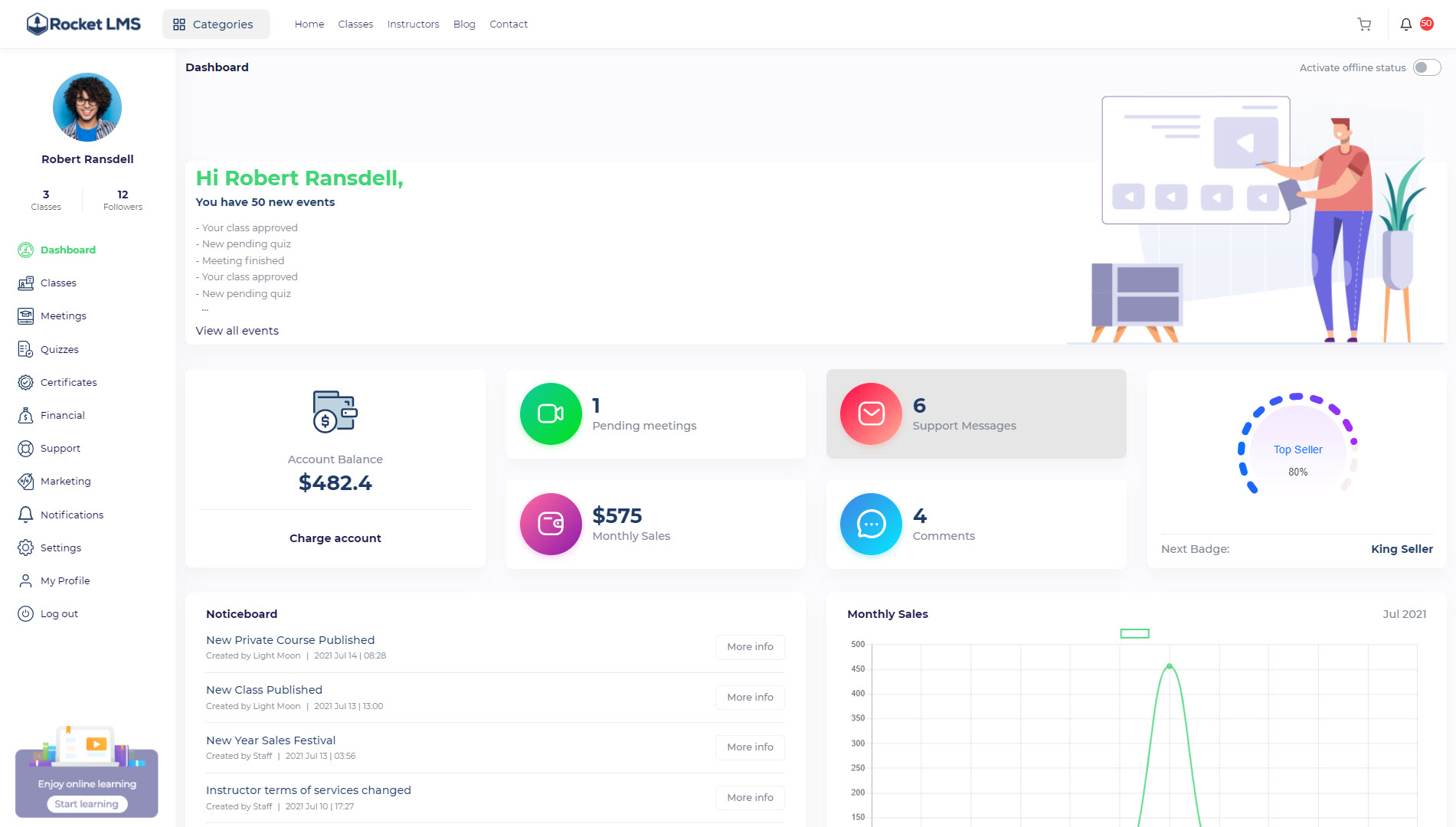 单讲师和多讲师:您可以将 Rocket LMS 用作市场或将其用作单讲师服务。
