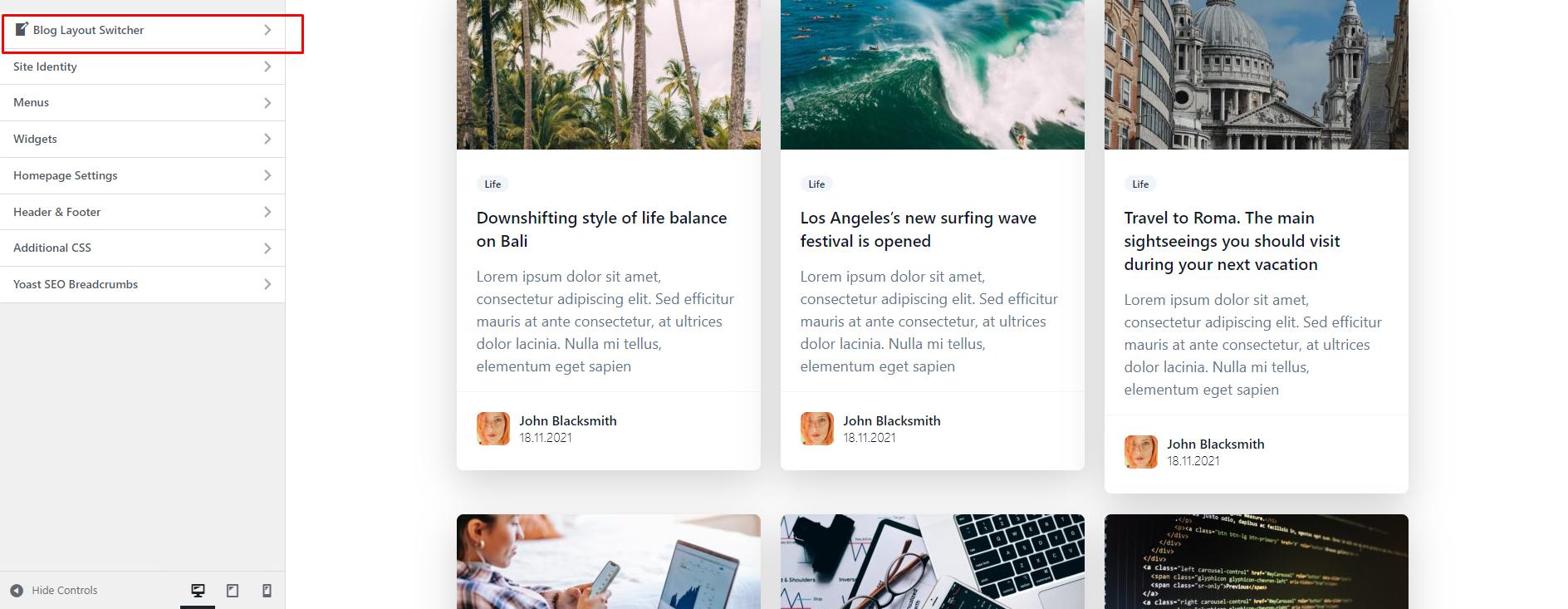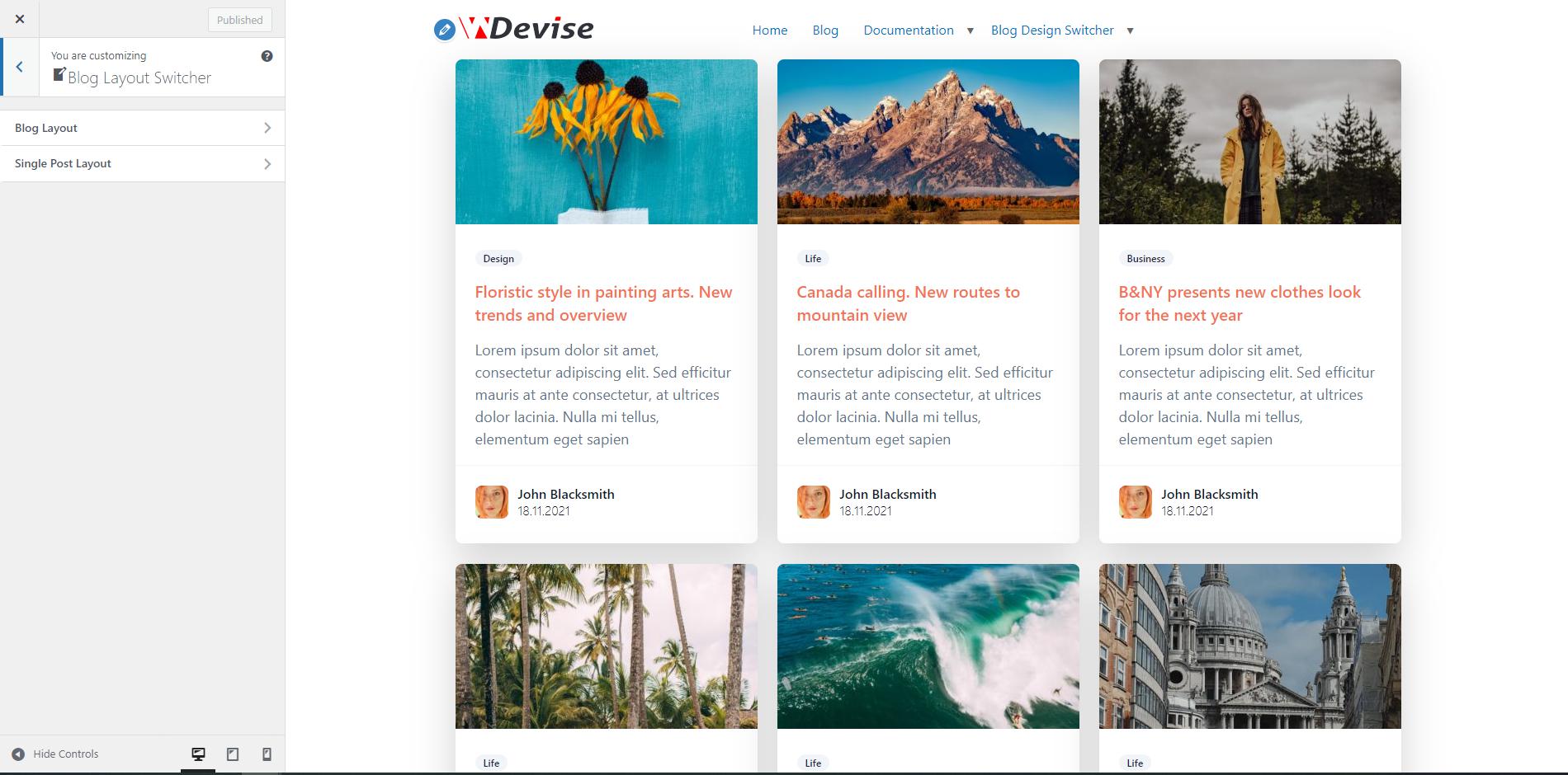 使用 Web Devise 制作的 Blog Layouts Design 切换器轻松更改和自定义您的博客页面、档案和帖子页面布局。