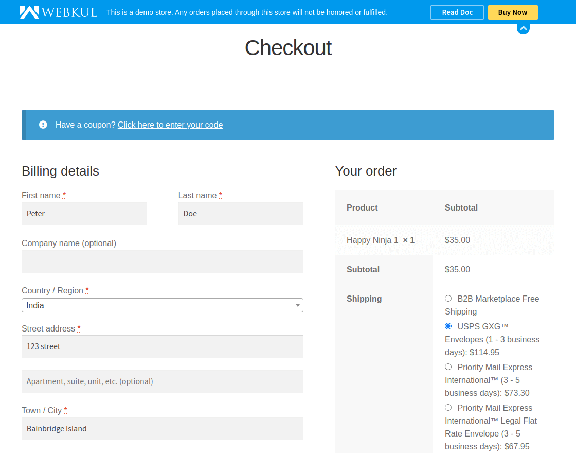4- 允许客户在结账时使用 USPS