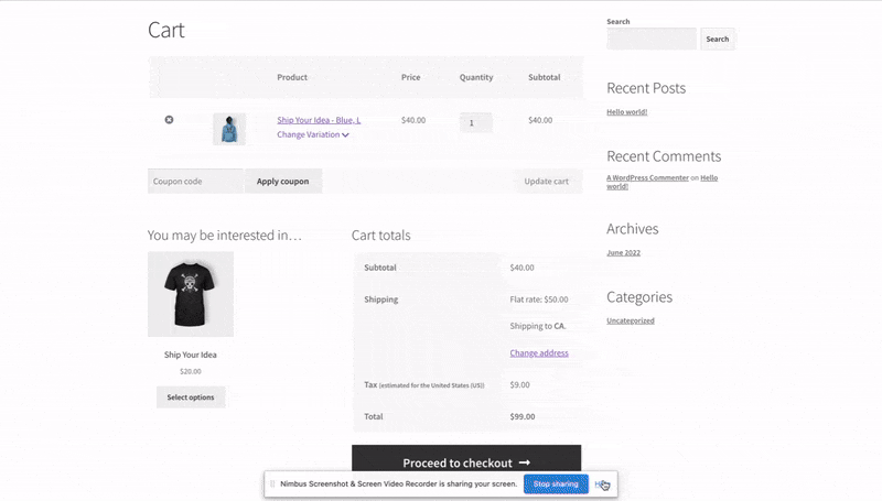 WooCommerce 购物车变体切换器模块允许客户直接在购物车中更改产品的变体。