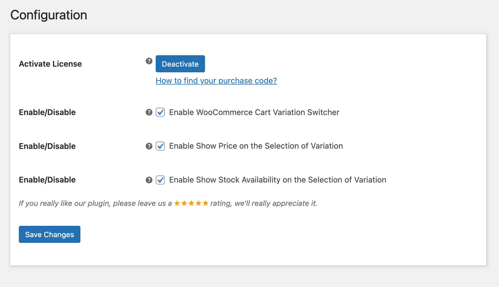 如果您使用任何 Variation Swatches 插件,那么它也支持该插件,客户将在购物车页面上看到这些选项。