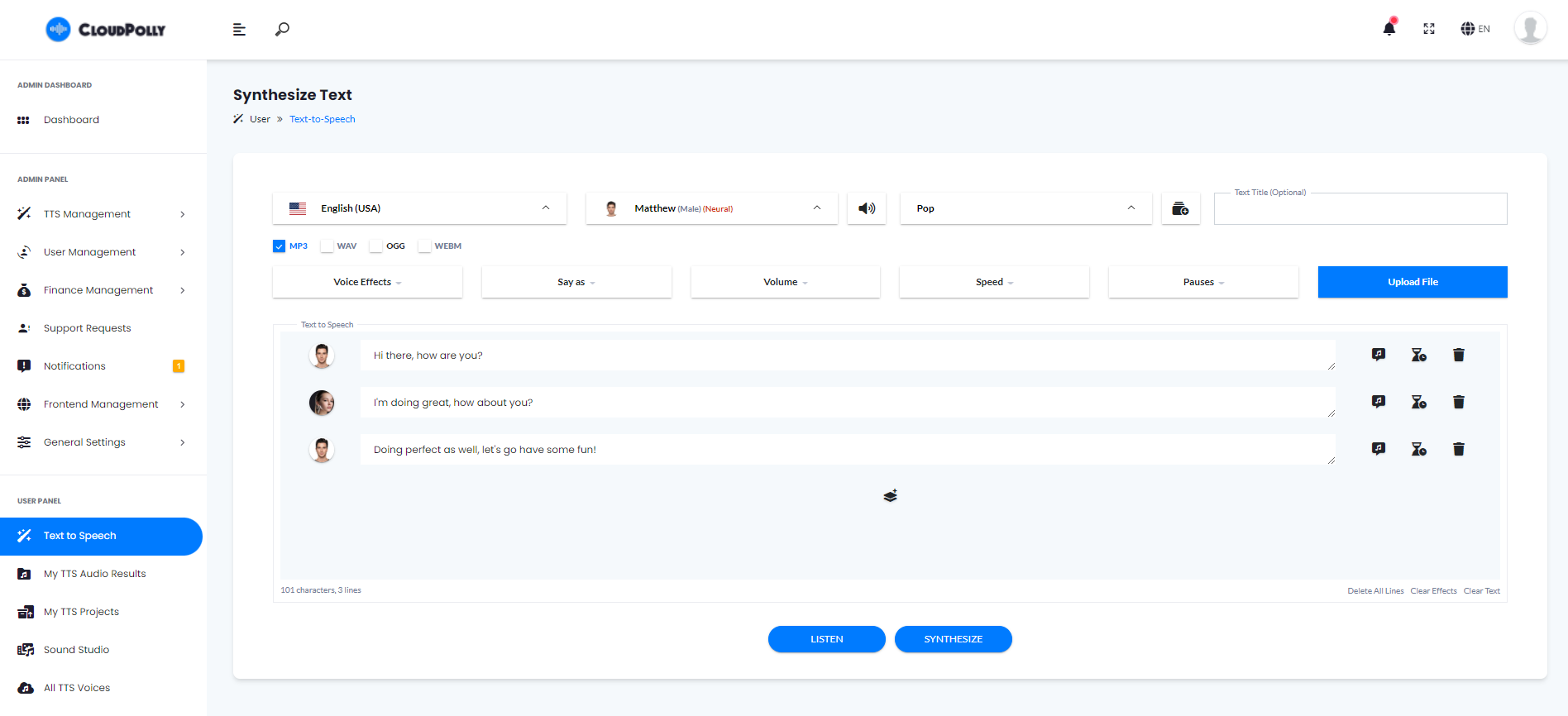 Cloud Polly 让您创建自己的业务,允许将任何文本变成逼真的语音,允许您创建各种媒体内容,例如有声读物、播客、语音内容以及会说话的应用程序,并构建全新的语音类别产品。 Cloud Polly 的 Text-to-Speech (TTS) 服务使用领先的云服务提供商(如 Amazon Web Services、Microsoft Azure、Google Cloud Platform 和 IBM Cloud)的先进深度学习技术来合成听起来自然的人类语音,您可以注册任何一个他们或同时与他们一起。拥有超过 135 种语言和方言的超过 838 种不同的逼真声音,您可以构建可在许多不同国家/地区使用的支持语音的应用程序。