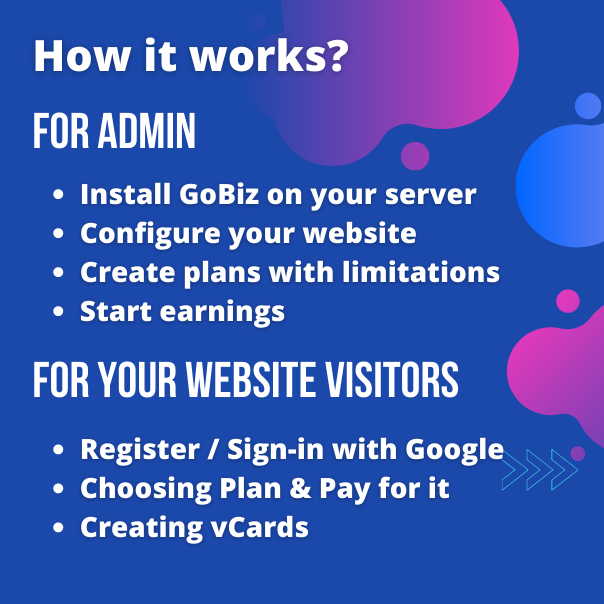 GoBiz 是一个数字名片/电子名片制作和 WhatsApp 商店脚本。 使用 Laravel PHP 制作。 对于这个现代世界,我们正在转向最新的趋势和技术。 通过减少纸张的方式。 我们转向数字名片/数字电子名片。 它确实是一个全新的概念,并帮助我们向数字化转型。 主要方面是,这些卡片可以随时随地更新,非常容易分享,兼容所有现代浏览器,支持二维码等等。