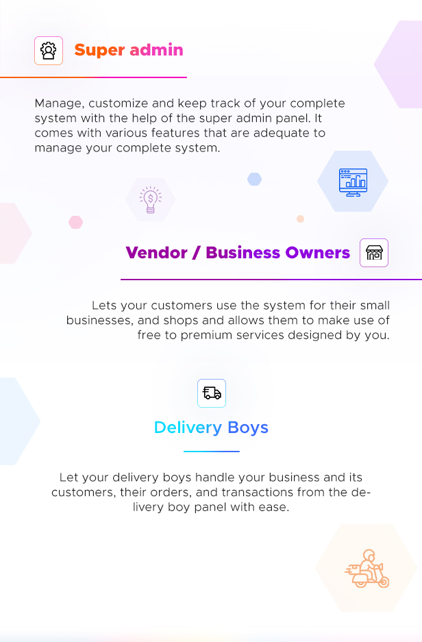 + 超级管理员 – 在超级管理员面板的帮助下管理、自定义和跟踪您的完整系统。它具有足以管理您的整个系统的各种功能。