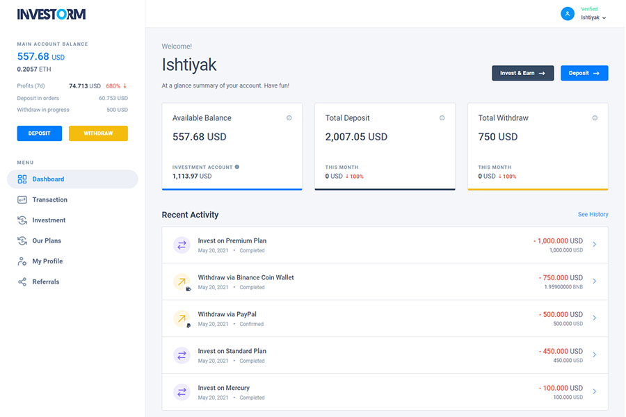 认识新的 Investorm 应用程序,这是管理您的 HYIP 投资平台的终极解决方案。使用 Investorm,您无需编程知识即可在几个小时内建立您的投资平台。它提供最强大的设置面板,您可以在其中非常轻松地管理每个设置。