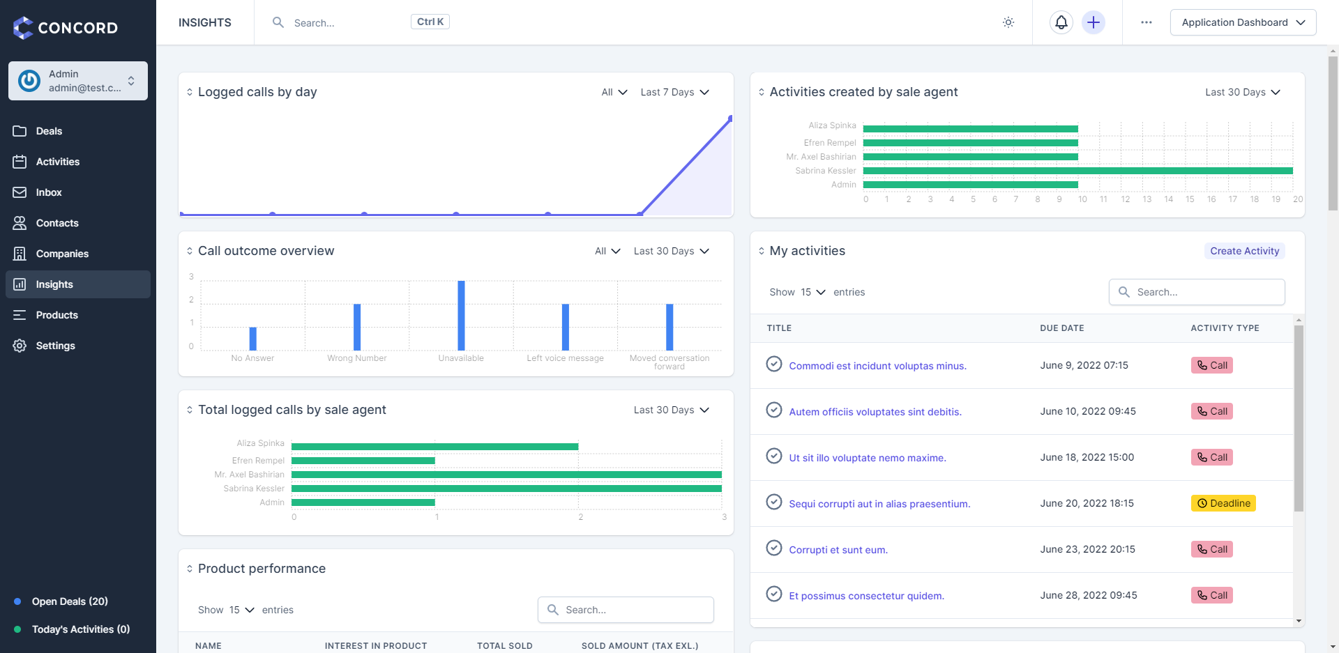 在当今时代,每家进行销售的公司都必须使用 CRM 来提高其生产力,Concord CRM 可以通过我们的活动帮助您提高生产力、更快地完成交易、组织您的销售日常任务并增加您的公司收入功能,您可以创建后续活动,为您或您的团队成员添加自定义提醒,过滤没有任何活动的交易,以及即将到来的或到期需要完成的活动,并且永远不要忘记再次致电客户。每个活动都可以链接到许多公司、联系人和交易,每次您访问他们的个人资料时,您都可以知道下一步需要采取的行动。