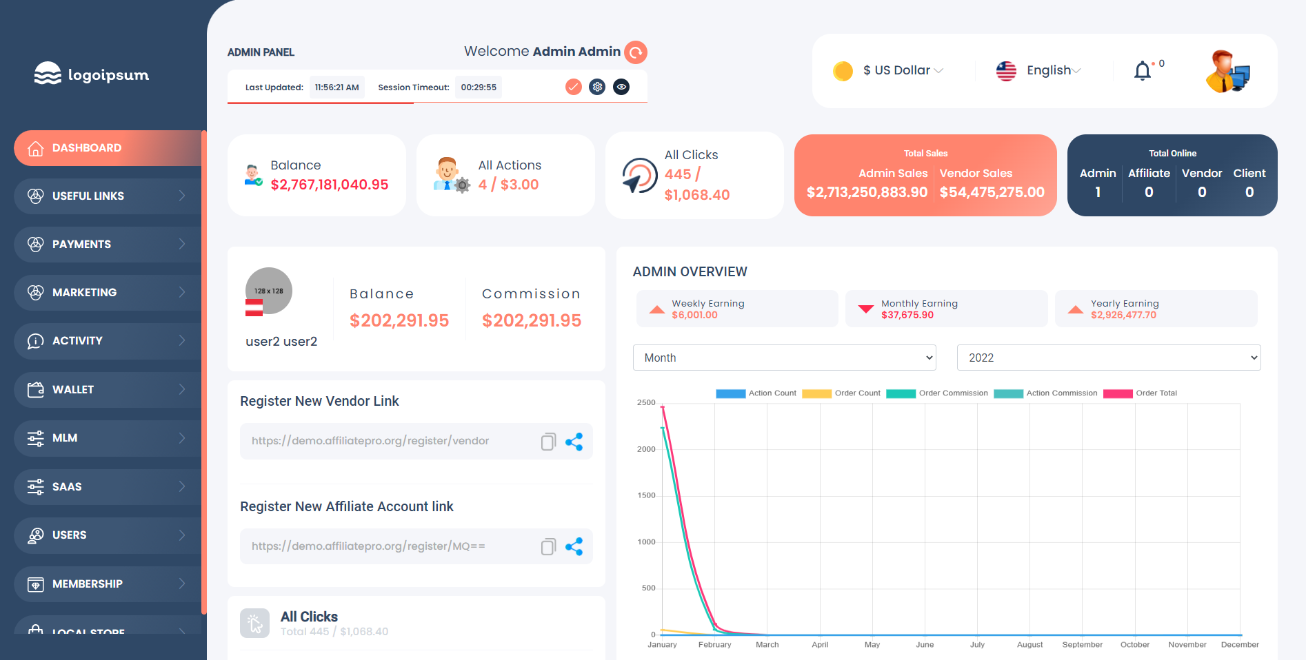 Ultimate Affiliate Management System 是唯一允许您的用户成为供应商并通过您的平台推广他们自己的产品和服务的平台。 作为管理员,您将一键从您的附属公司、供应商和附属供应商那里获得多层次的收入。