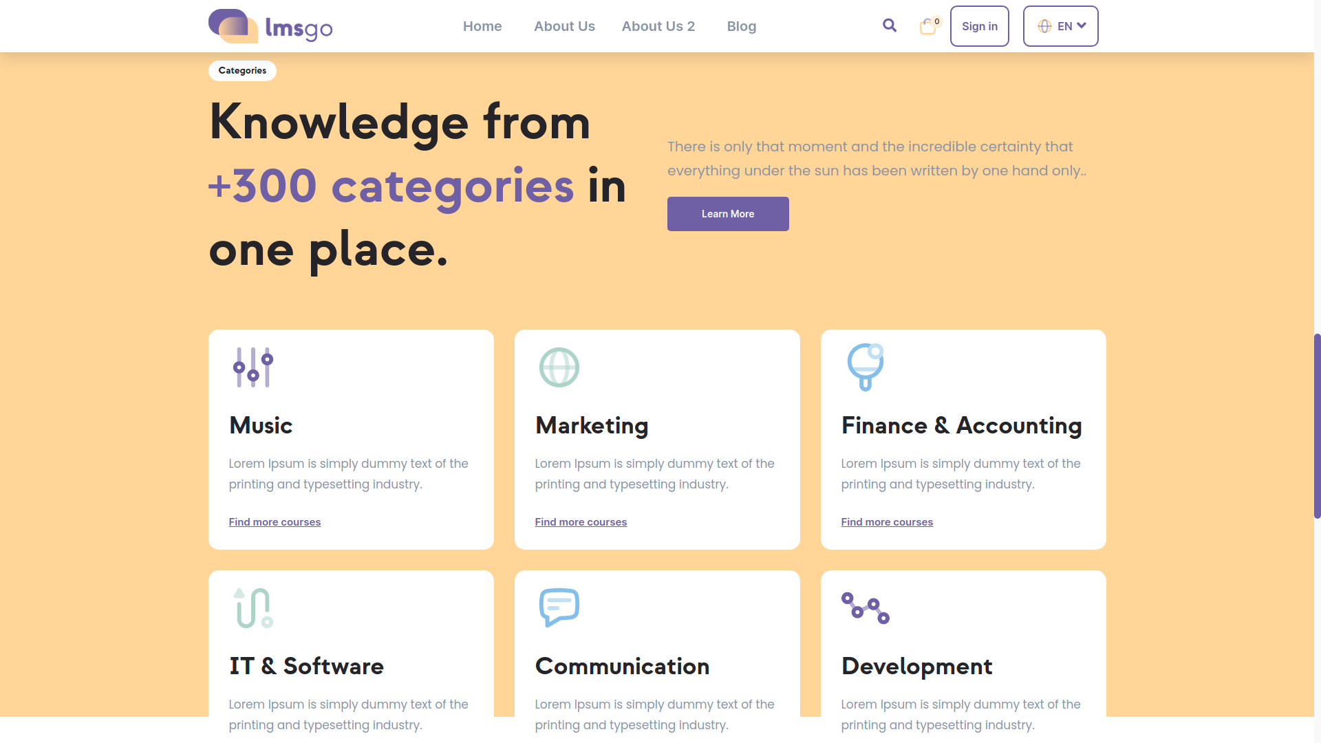 前端将提供您在后端应用的所有设置的表示。也就是说,它会在前端创建一个学习站点视图。课程将在此处按类别列出。