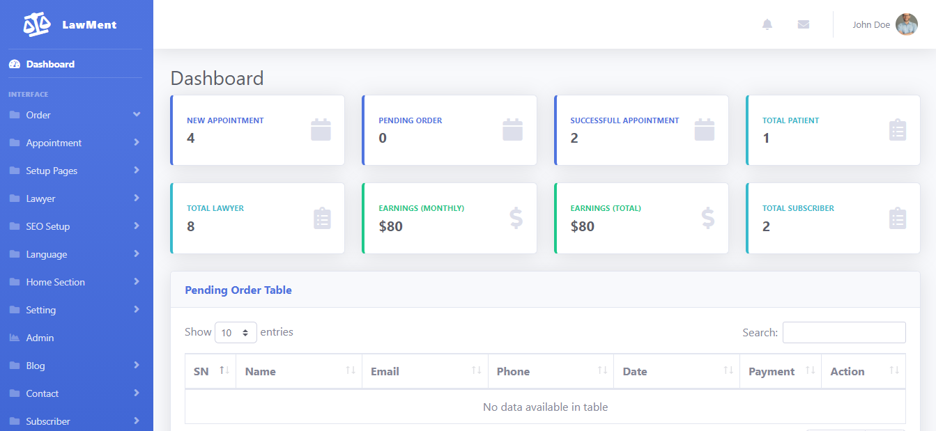 Lawyer 是一个基于 SaaS 的律师预约系统。 在这个系统中,客户可以免费注册和登录并与他/她想要的律师预约。 客户可以根据地点或部门搜索律师并快速指定。 律师还可以登录并为他的客户创建处方、管理日程安排等。