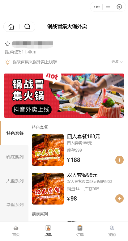 今天案例推荐官点点给大家介绍的是一个火锅外卖小程序运营成功案例,程序主要实现:开创了懒人火锅的新时代,使吃火锅没有了地域的限制,不出门,不排队,想在哪儿吃就在哪儿吃的新模式。用户可以通过平台预订火锅配送的时间,平台为用户准备所有的食材。用户可以根据自己的口味选择火锅的类型,使用户有更好的体验,提高用户的黏性,用户可以随时查看他们的火锅配送将在多长时间内到达,并随时随地跟踪订单情况。我们一起来看看案例吧
