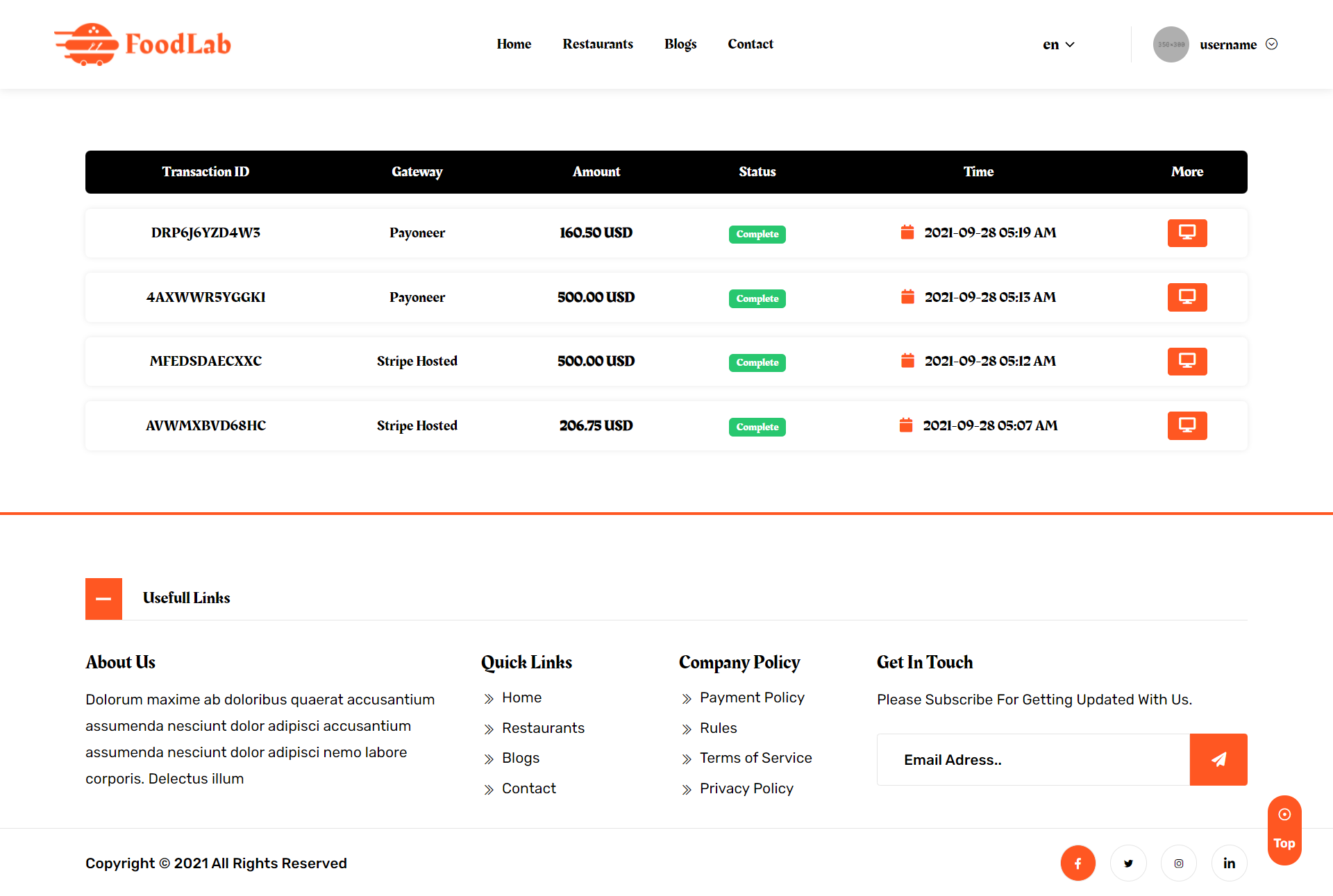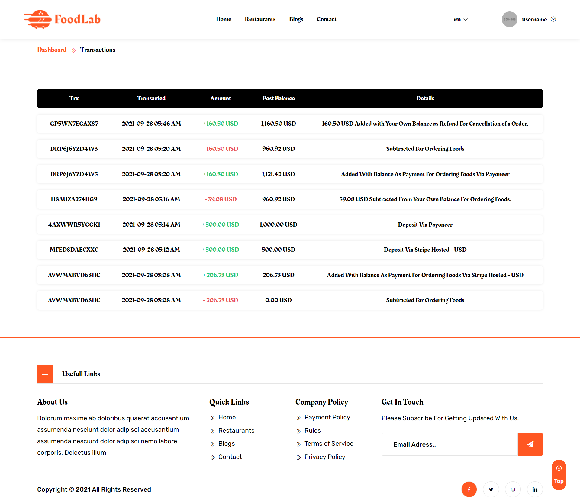 FoodLab,PHP laravel 自带的专业送餐解决方案。它是为那些想要启动他们的按需送餐网站的人开发的。就百分比而言,大约 42% 的整体食品订购市场现在被放在网上。综合来看,食品行业的年增长率约为3.7%,在线订餐和外卖的年增长率约为15-20%。在这里,餐馆老板可以列出他们的食物,访客可以在线订购。访客将向网站所有者付款,网站所有者将确认餐厅所有者的付款。管理员将从餐馆老板的提款费中赚取。