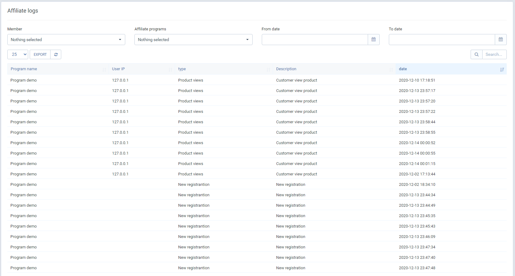 会员管理模块允许在线商家为其在线商店设置会员营销系统。管理员可以为其产品创建自定义横幅、文字广告和链接。注册用户可以成为会员并在不同的网站上宣传产品。会员佣金率可以通过按点击付费、按唯一点击、固定或百分比佣金类型设置。会员条款和条件可由管理员设置。可查看详细的统计信息,如业绩记录列表、销售记录列表、付款记录列表、月度和年度图表。管理员可以使用不同的付款方式向其附属用户支付佣金。