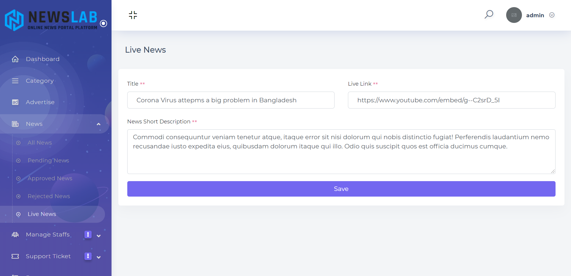 NewsLab,一个 laravel 制作的在线报纸和杂志平台,它提供了创建自己的报纸网站的绝佳机会。你可以称之为迷你电子纸电子新闻脚本。根据数据,世界上超过一半的成年人阅读报纸:超过 25 亿印刷版和超过 6 亿数字版。我们的 NewsLab 是一个完整的在线杂志系统,网站所有者或记者可以从他们的位置收集和发布新闻,访问者可以从任何地方在线阅读。