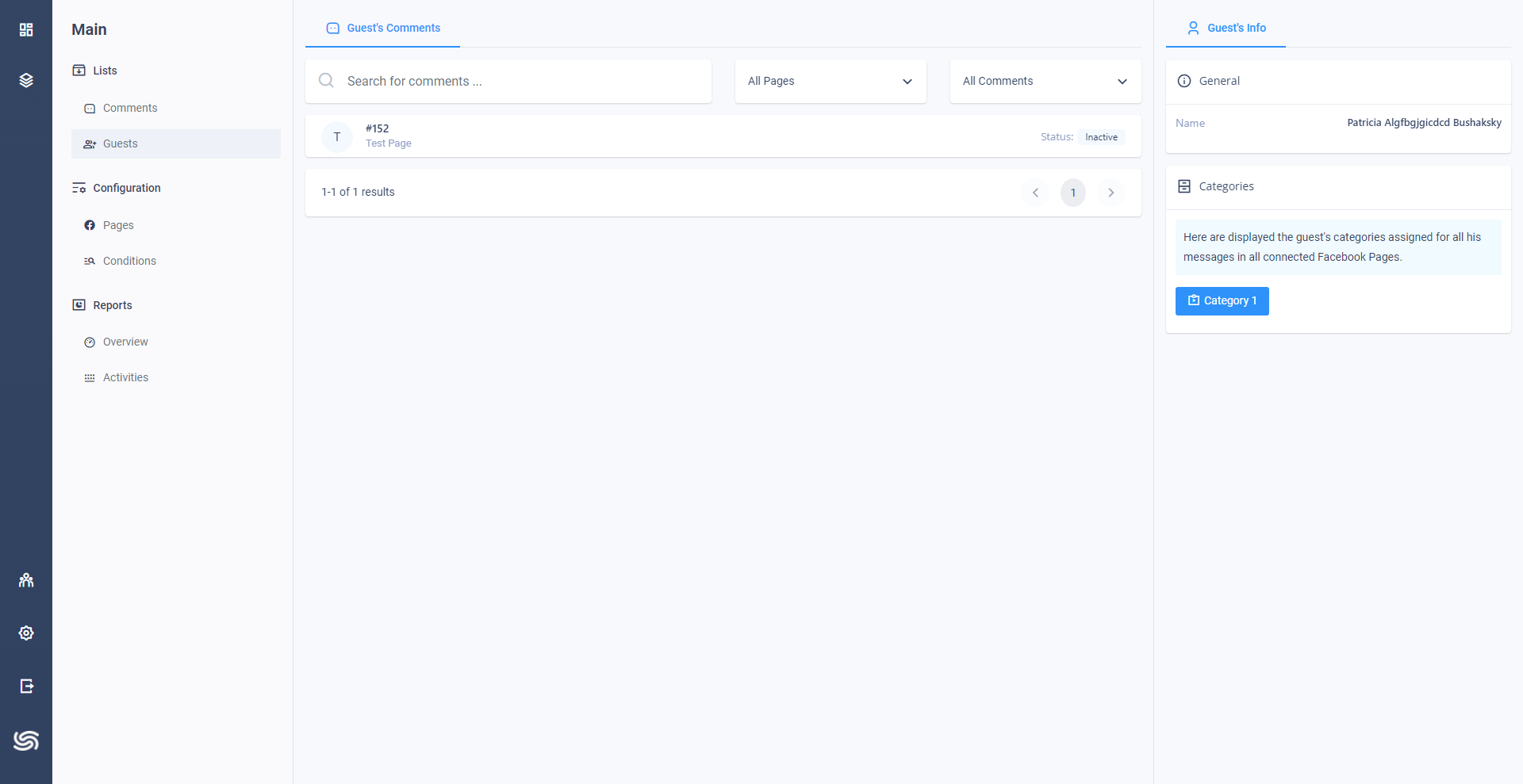 在访客页面中,所有 Facebook 的用户都创建了不需要的评论。在客人的页面中可以看到分配的类别、姓名等基本信息和所有客人的评论。
