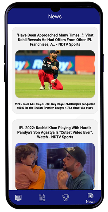 现在板球触手可及。 您可以享受观看板球直播的乐趣,并见证您最喜欢的板球运动员获得高分。 计算您的顶级印度和外国板球运动员在全球不同地点进行的板球比赛中的六分球、四分球和几个世纪。 随时下载免费的现场板球应用程序,以获得最快的现场球评论结果。