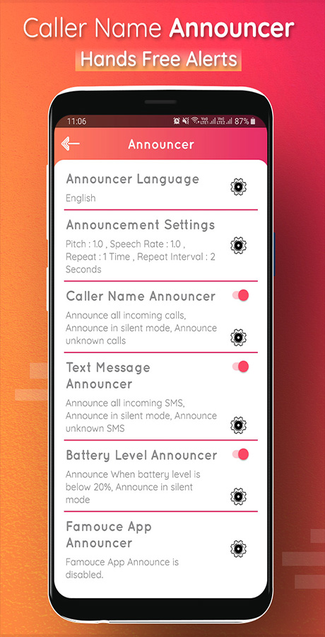 根据需要打开或关闭我们的来电播音员功能。 100% 自定义