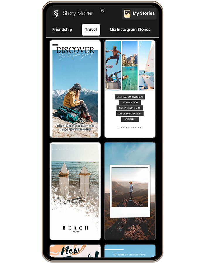 Story Maker 是用于照片和视频的 Instagram 故事编辑器和故事设计实验室,提供 500 多个帖子模板、170 多个动画故事,可帮助您创建漂亮的 ig 拼贴布局和故事,并成为 Instagram 静态和动画故事制作者和帖子创建者 与艺术。 独特的 insta 故事和 ig 帖子可以使用模板制作,也可以在空白画布上制作,您可以在其中使用 insta 故事样式过滤器和贴纸对其进行自定义。 使用 StoryLab,为 Instagram 和 Snapchat 设计精彩的 Instagram 故事(包括动画故事)、insta 帖子甚至 ig 高亮封面图标和徽标非常容易。