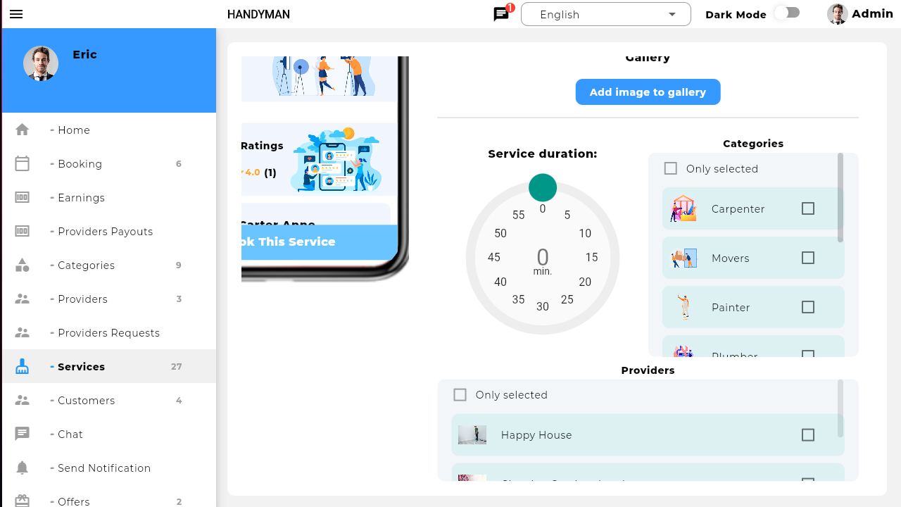 On Demand Service 等杂工应用程序让管理员为每笔交易赚取收入,并从代理那里获得佣金。 他们可以查看获得的利润并查看改进领域的建议。