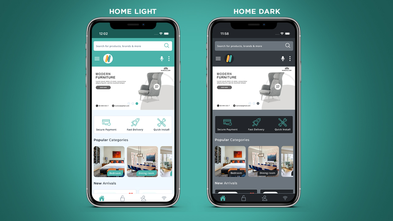 NunovaFurniture 是一个有吸引力的 React Native 电子商务应用程序模板,专为家具销售店设计,但它也可用于杂货店、服装店和销售电子产品、面包店、蔬菜和水果等产品的商店等多功能商店。它几乎具有电子商务平台的所有主要功能。