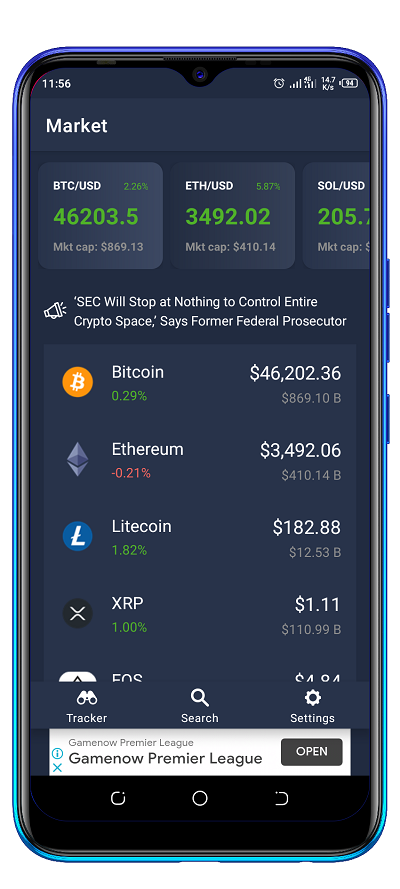 加密货币不仅仅是价格图表。 Crypto Tracker 应用程序的新闻部分可确保您掌握加密货币和区块链行业的最新发展。 您还可以找到最重要的比特币新闻、交易所和钱包评论、加密价格预测等等。