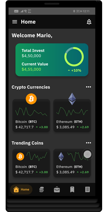 Coinpool 加密货币投资组合管理 Flutter 应用程序 UI 工具包模板是一个基于加密货币的应用程序,您可以在其中轻松跟踪实时加密货币价格、图表和硬币市场变化。